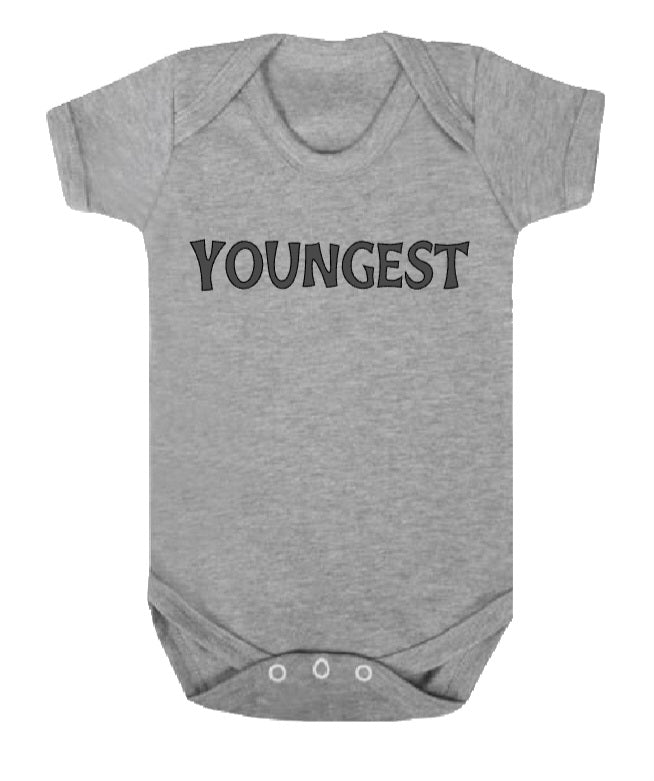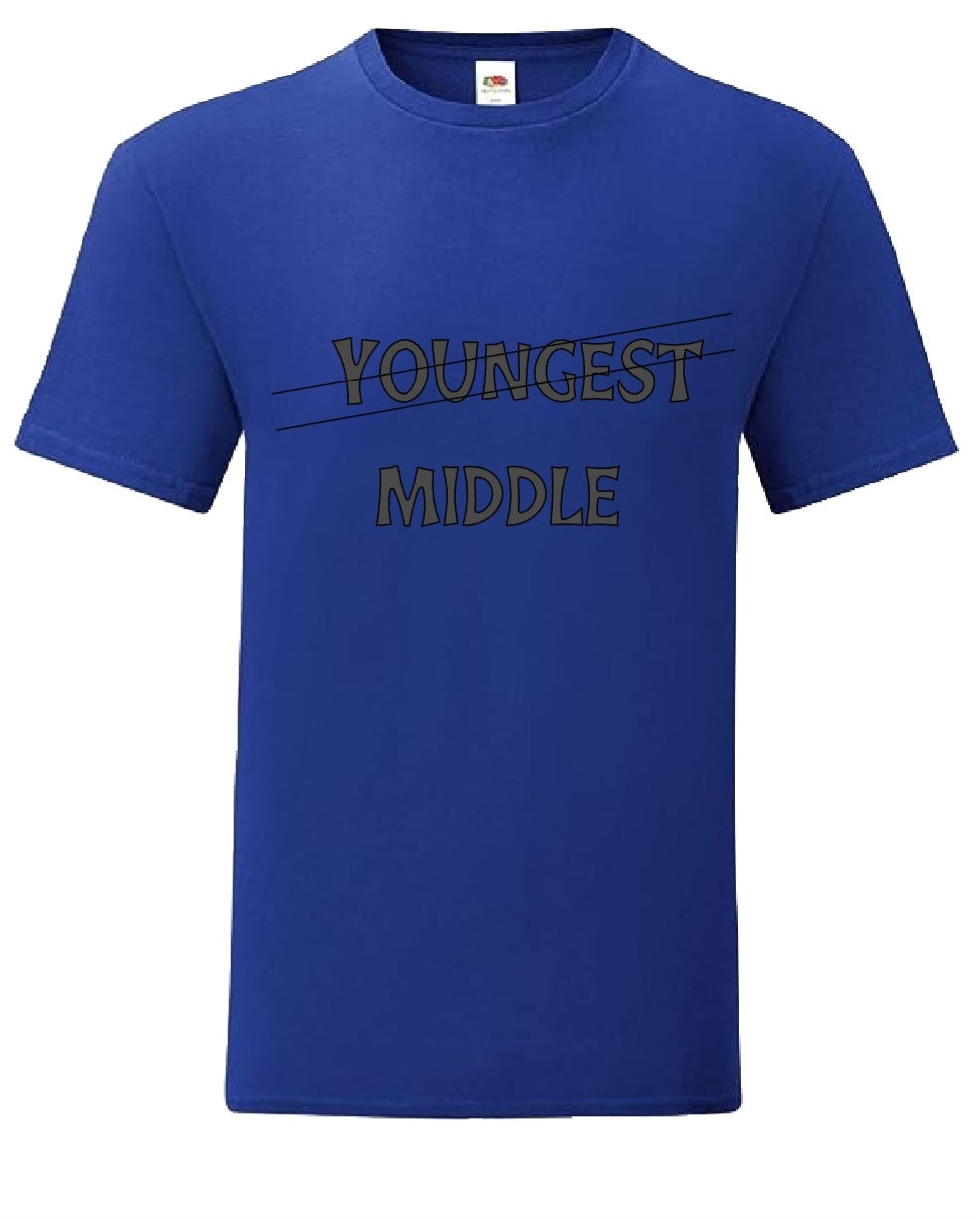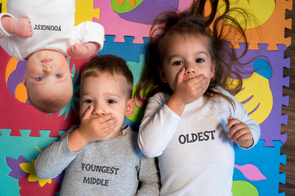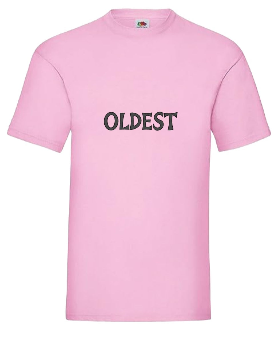 'Oldest' and 'Middle' are on T-Shirts and the 'Youngest' is on a baby vest.
