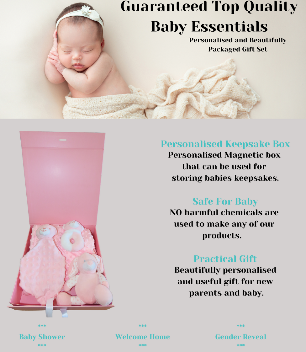 The Parker is a gorgeous gift set that is a lovely way to welcome a new precious baby into the world. Personalised blanket and comforter with other items are lovingly packaged in a beautiful, personalised keepsake box with a gift card with your personal message on, this is a beautiful gift for new parents and baby.